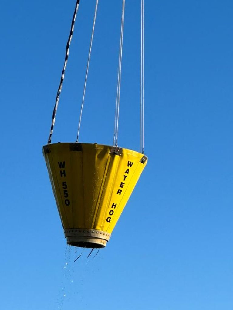 Discover Water Hog for Drones — the first lightweight water bucket system designed exclusively for unmanned aerial firefighting.